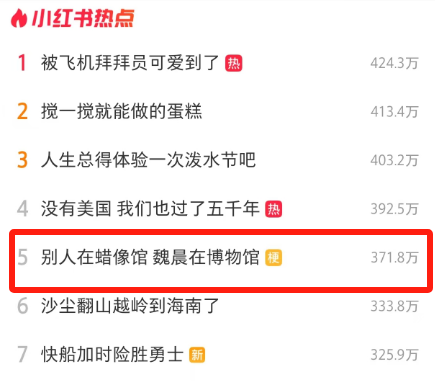 今年3月,一位网友在徐州博物馆拍摄的一段视频引发热议,该视频的内容是游客手持魏晨照片和雕像“魏晨”合影,如今,这段视频已经获得42.3万赞38.6万转发和3.5万评论。其实早在2023年,@文旅徐州官方抖音账号就曾发布这尊神似魏晨的雕像视频,引发粉丝讨论和小范围的“出圈”。