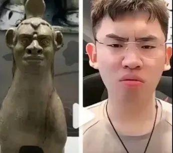 去年,连云港镇墓兽与鉴宝博主“听泉赏宝”神似突然“火出圈”。在直播时,听泉赏宝回应称:“这应该是我的前身,已经把它作为头像了。”网友调侃这种现象是“镇墓千年无人问,一朝似泉天下知”。