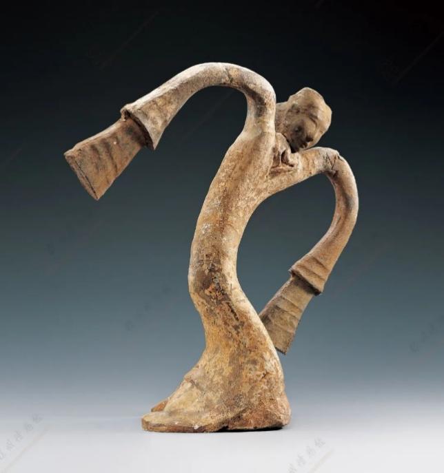 西汉陶绕襟衣女舞俑,其姿态恰似欢快地跳网红舞蹈“科目三”。