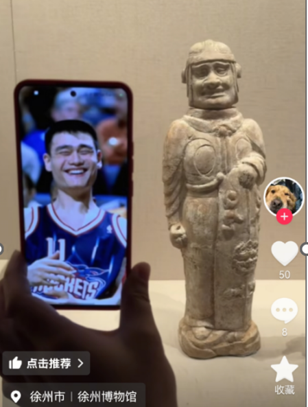 在徐州博物馆,因“撞脸”名人或酷似现代“网红”表情包而“走红”的“显眼包”文物有很多。该馆的北齐明光铠武士陶俑,因其模样酷似姚明而被人熟知。