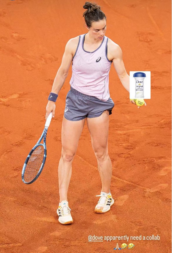 布伊松随后则打趣地发布了一张手持多芬体香剂的照片,并@这一品牌称,“看来需要合作了。”