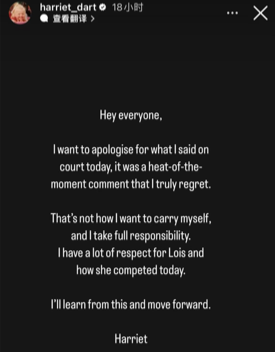 天空新闻网描述称,达特在第二盘比赛休息后换场时告诉裁判,“你能告诉她让她用点体香剂吗?因为她身上的味道真的很难闻。”而此时的布伊松刚刚从她身边走过,似乎听不到达特与裁判的对话。