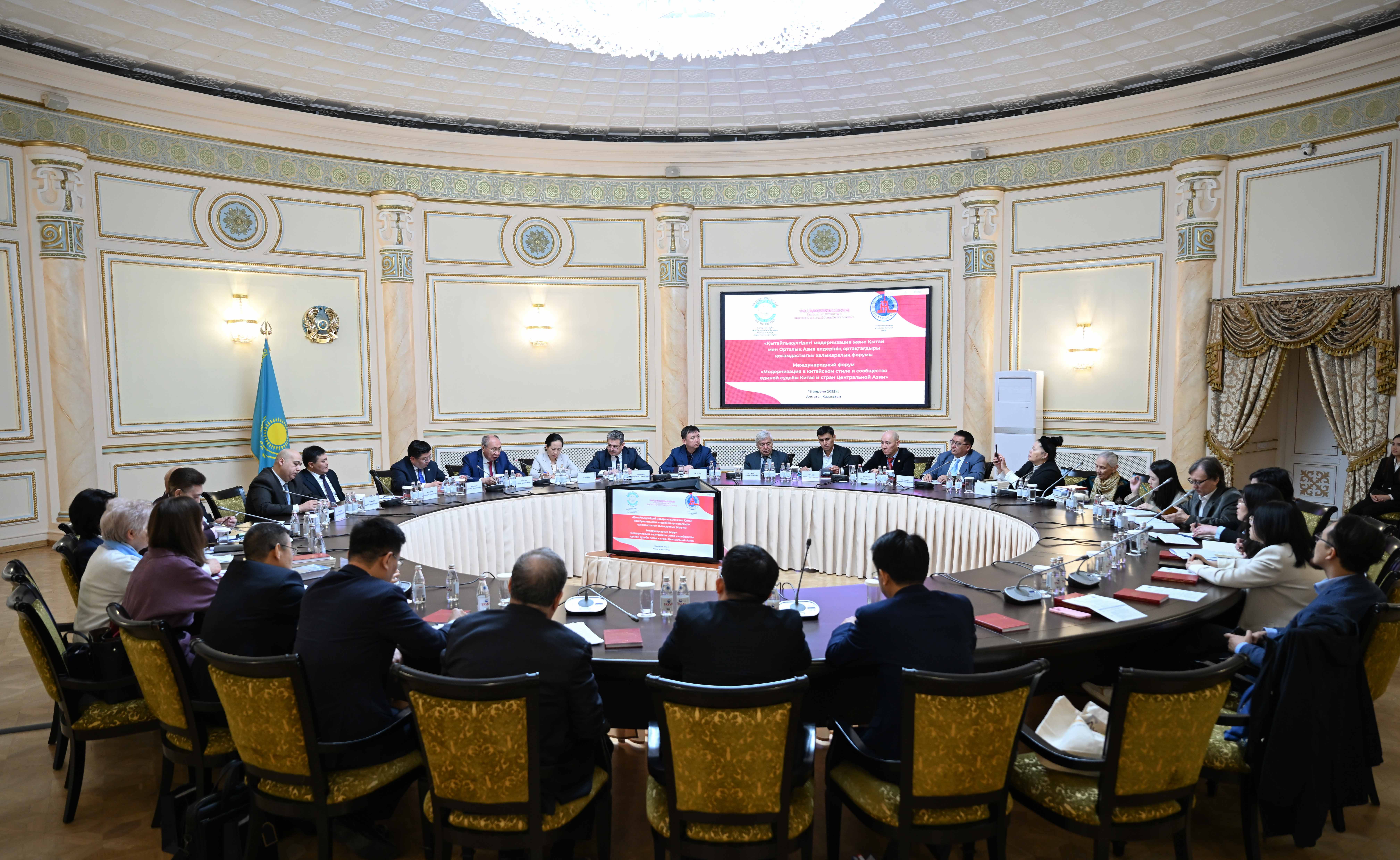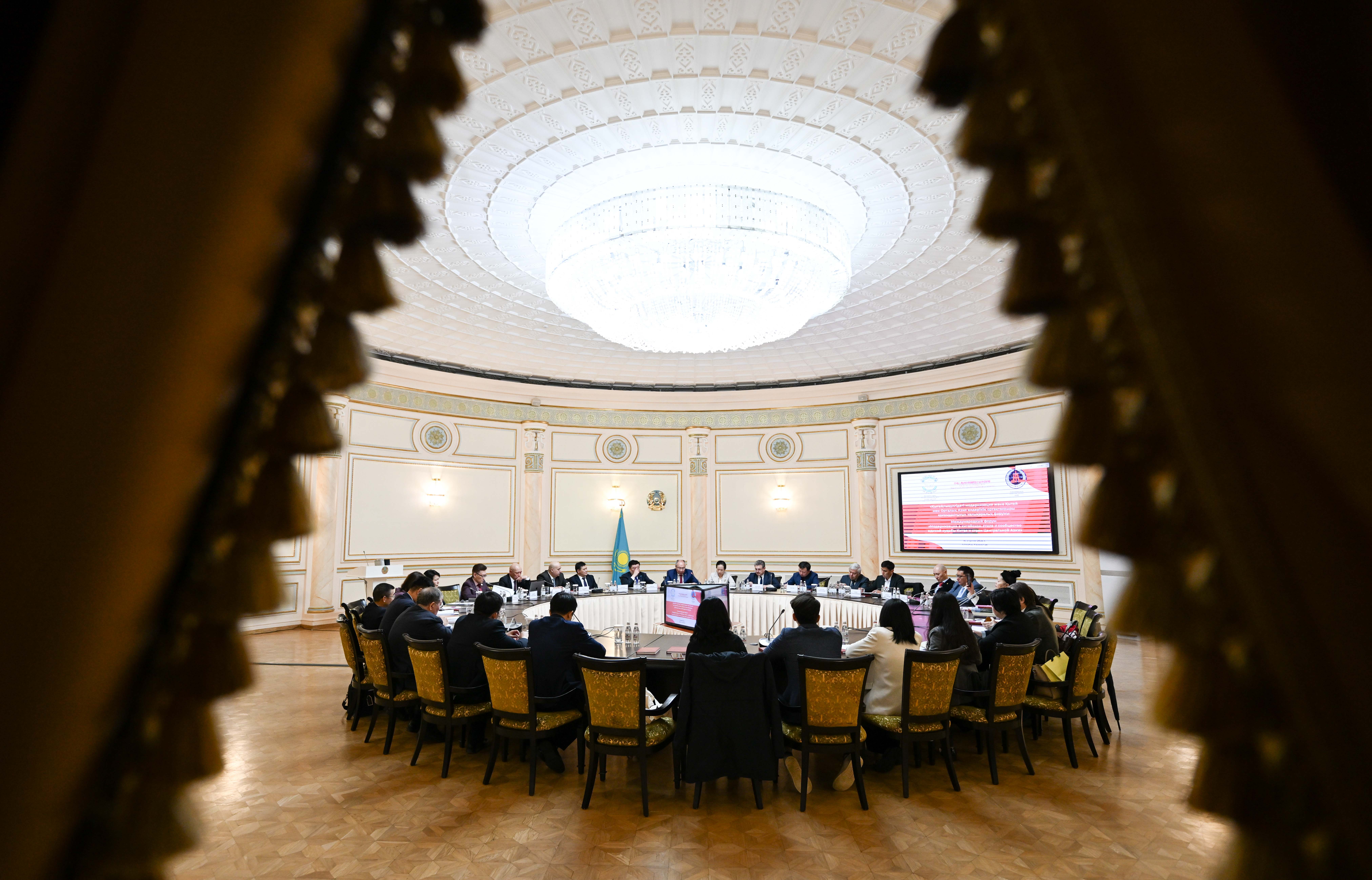 这是4月16日在哈萨克斯坦阿拉木图拍摄的红厅论坛现场。