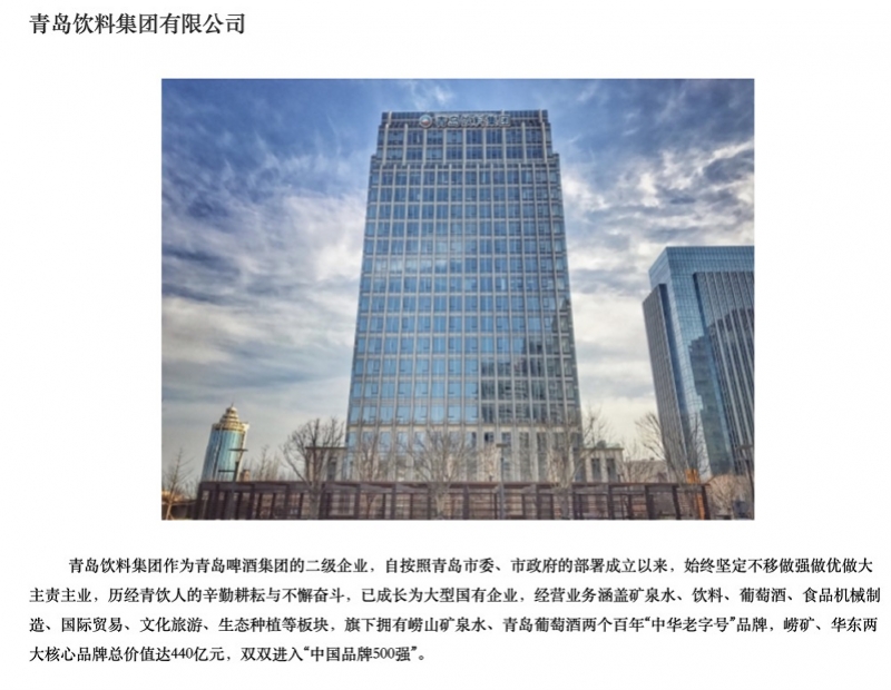 青岛饮料公司网站显示,该公司已整合进青岛啤酒集团。(截图