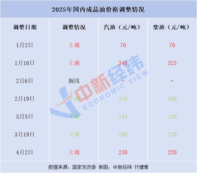 中新经纬梳理发现,国内油价已经历七轮调整,呈现“三涨三跌一搁浅”的格局。涨跌互抵后,国内汽、柴油价格每吨较去年底均上涨55元。