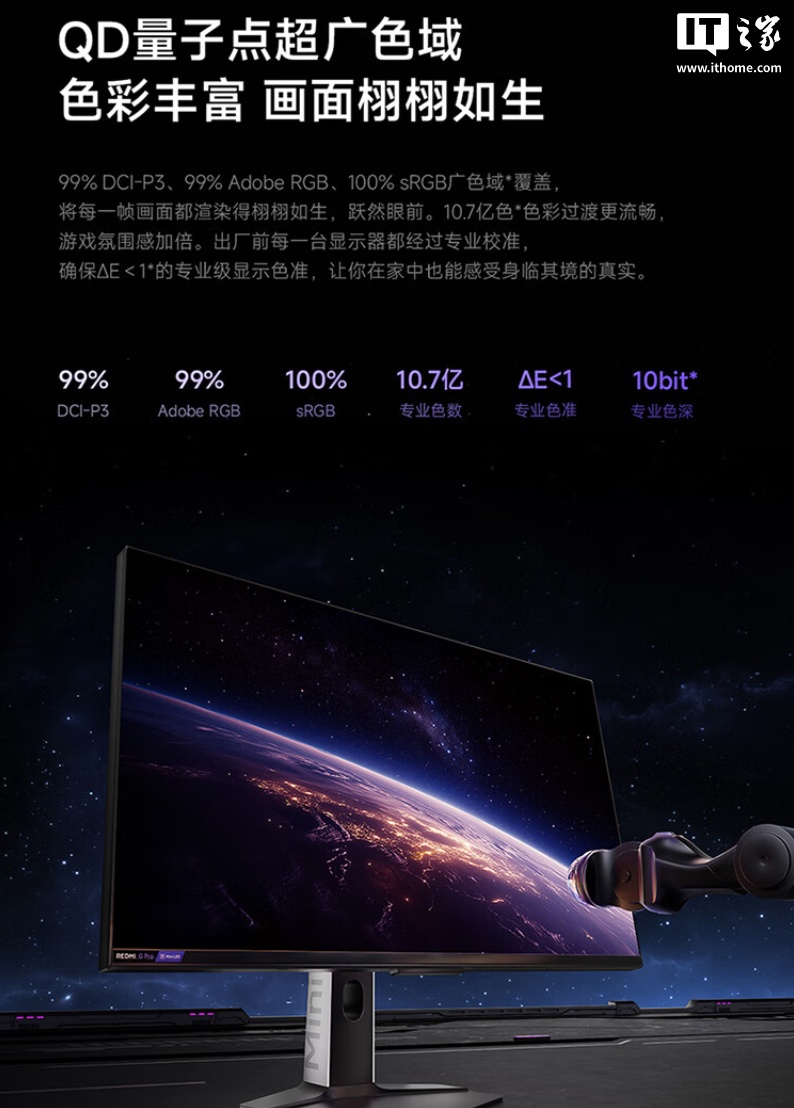 IT之家附小米REDMI显示器GPro27U参数配置如下: