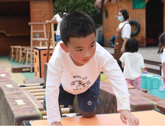 沙池区,几个小朋友正拿着铲子、小桶等工具忙碌着。他们有的在堆城堡,有的在挖地道,分工明确又相互协作。一个小男孩不小心把城堡弄塌了,本以为他会哭闹,没想到他只是愣了一下,便马上重新开始搭建,嘴里还嘟囔着:“这次我要搭得更坚固一些。”这种面对挫折不气馁,专注投入解决问题的态度,让人不禁为之点赞。