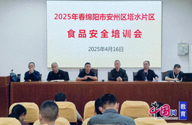 4月16日,绵阳市安州区2025年春季塔水片区校园食品安全培训在塔水镇初级中学举行。区教体局领导、食品安全监督员及16所学校相关负责人参加活动。