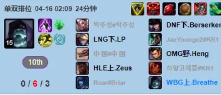 值得一提的是,昨日凌晨的Rank上,Breathe掘墓被Zeus被打成0-6-3。