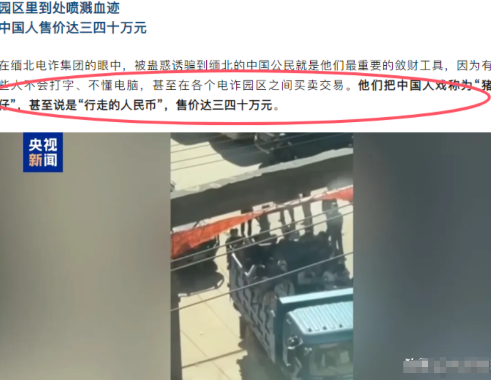 比如在央视新闻客户端中就明确表示,在缅北电诈集团眼中,中国公民就是他们的敛财工具。因为有些人不会打字,就在各个园区中被交易转卖,而他们将这些人称作是猪仔,每个卖价达到三四十万元。