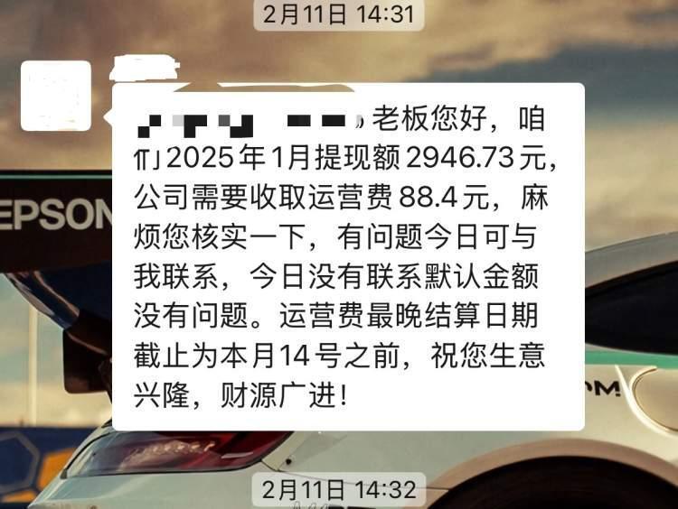 米先生也满以为从此只要坐在家里收钱,月进万金。没料到,第一个月的营收就给了他当头一棒。当月他的提现金额只有2946.73元,利润不足10%,还要扣除88.4元运营费,费率为提现额的3%。