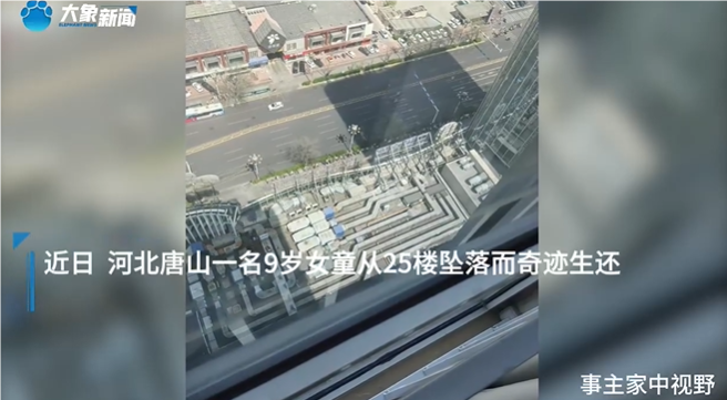 河北唐山一名9岁女童从25楼坠落至7楼平台,奇迹生还,孩子妈妈沈女士告诉大象新闻记者,物业对于安装窗户护栏一事不同意,才会使女儿在开窗时,因纱窗突然松动,从屋内摔下来。沈女士称,“当时装修的时候,问过物业他们说不能装。窗户内侧原来有个一米左右的防护栏,上面开窗,目前该小区都没有安装护栏。”