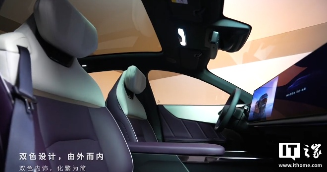 该车外观、内饰均采用双色设计,搭配黑色悬浮车顶。座椅采用钛色金属织物装饰,26.45英寸5K一体式大屏采用“超窄边框、超薄触感、超快响应”,此外还搭配23扬声器+7.1.4杜比全景声。