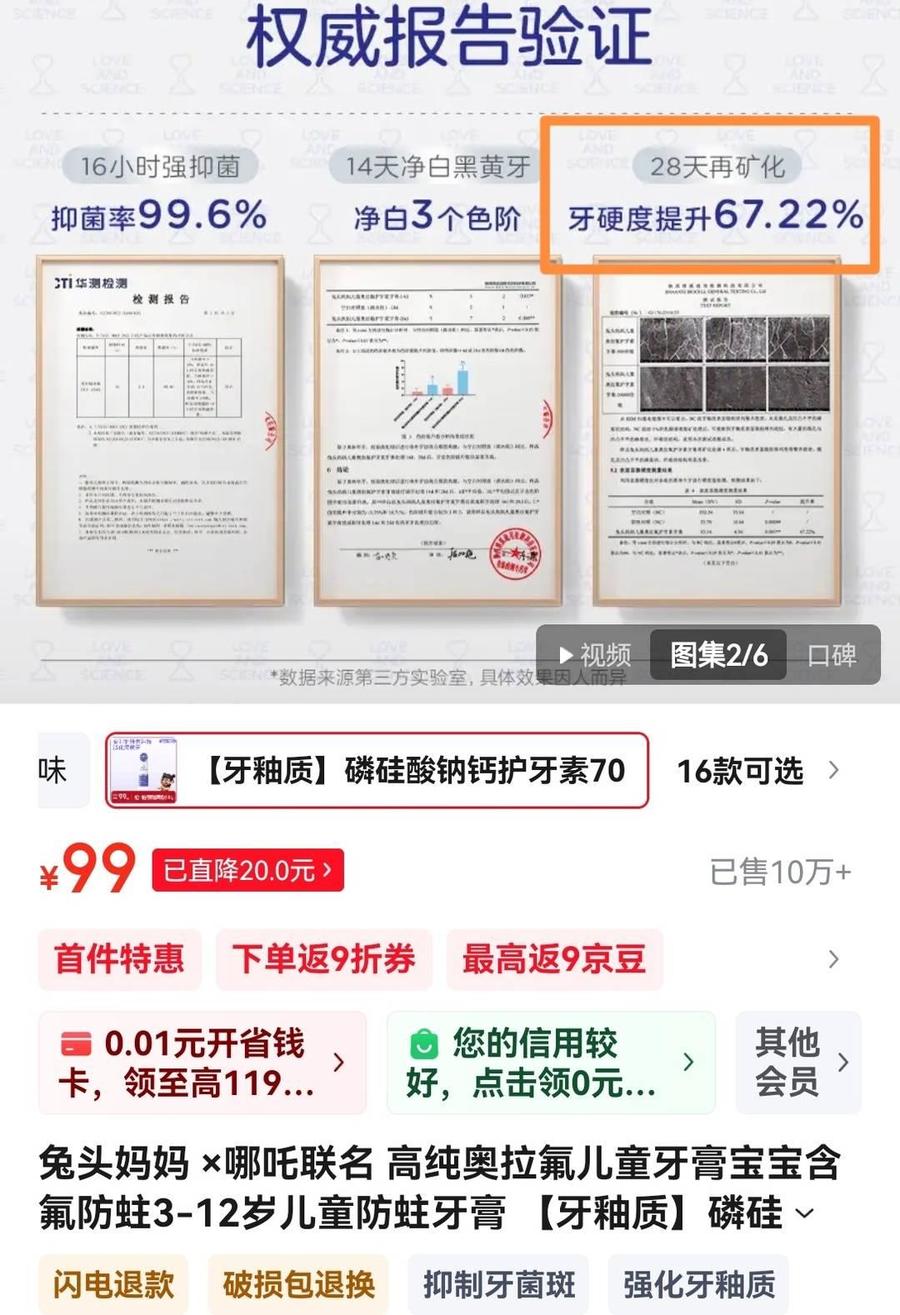 它与《哪吒2》的联名款产品,采用了“攻克研发壁垒”的高纯度奥拉氟,是“氟中黄金”,浓度是德国奥拉氟的4倍,28天牙釉质硬度提升42.96%。