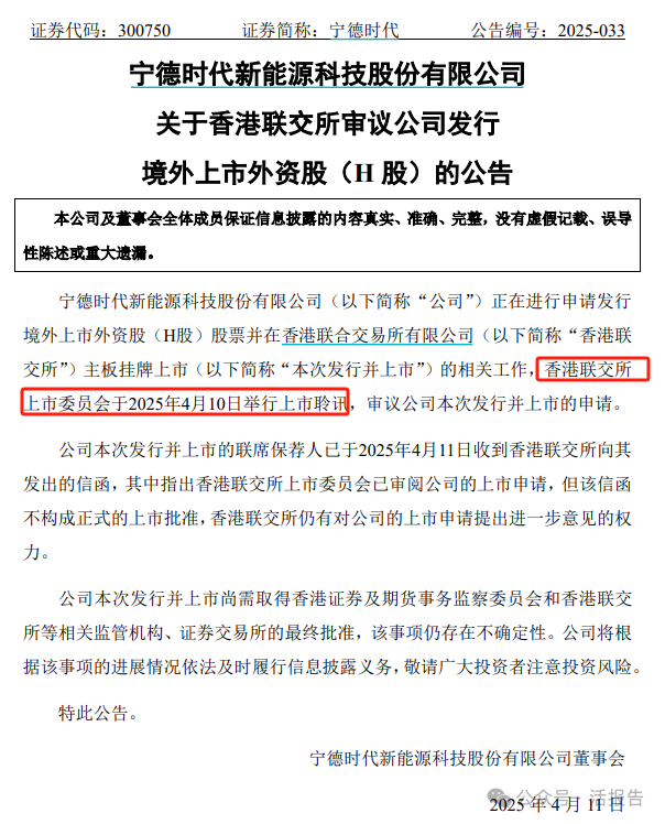 据宁德时代公告,香港联交所已于4月10日举行上市聆讯,审议公司本次发行并上市的申请。根据市场报道,宁德时代预计融资超50亿美元(约合390亿港元)。以集资额计,将是继2021年快手(1024.HK)上市以来,香港最大规模的IPO案例。