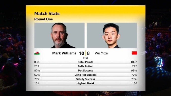 最终,威廉姆斯10-8战胜吴宜泽晋级16强。