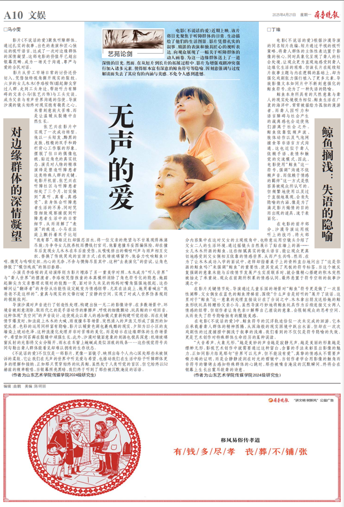 影片《不说话的爱》聚焦听障群体,通过扎实的叙事、出色的表演和匠心独运的视听语言,达成了一次对边缘群体的深情凝望。这部电影的价值早已超出银幕范畴,成为一场关于沟通、尊严与爱的全民对话。