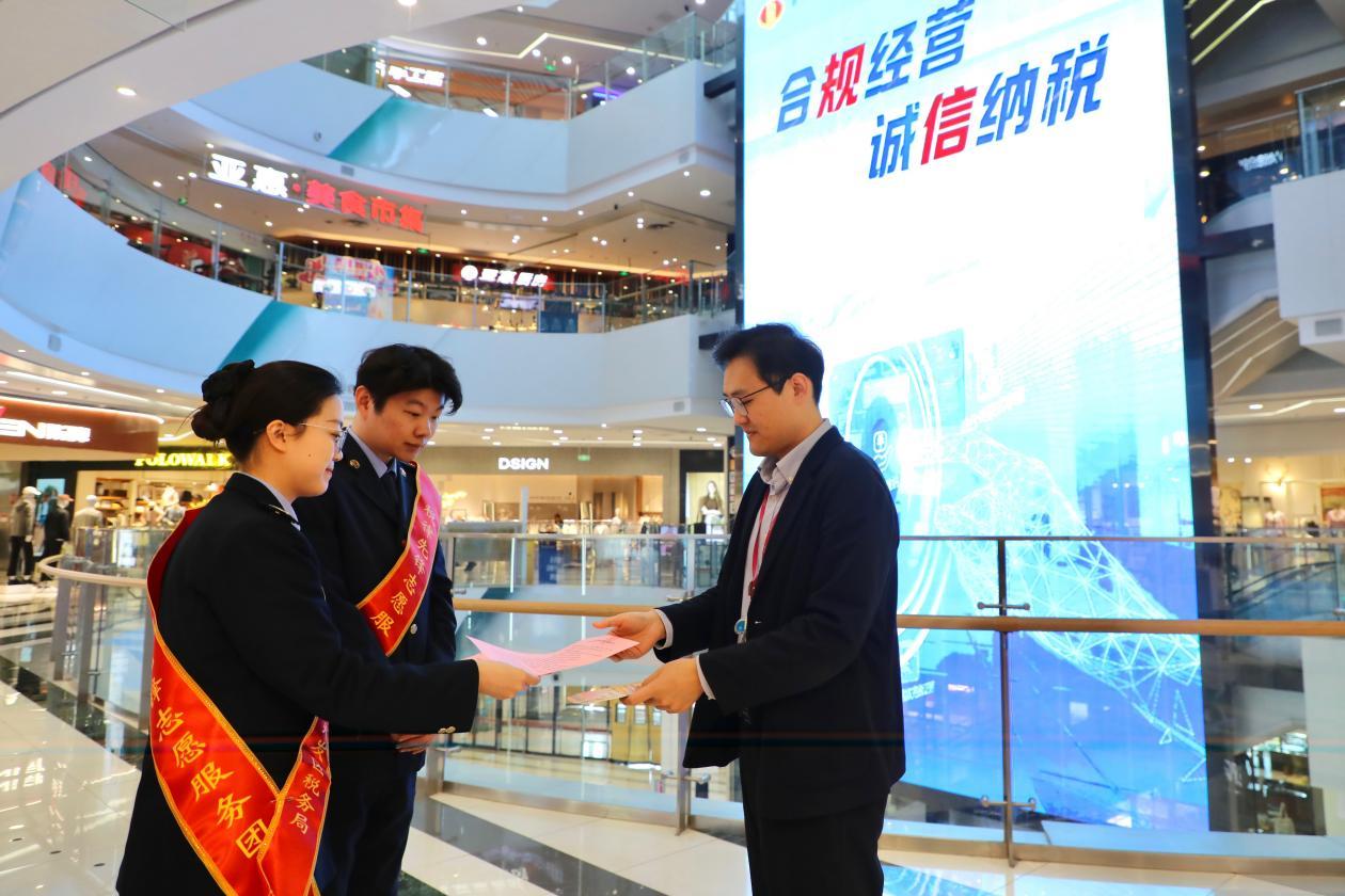 税务干部组建“税律先锋·惠企服务团”,为各大商场管理公司上了一堂“合规课程”,针对餐饮、零售、文体娱乐等行业特性,讲解发票开具、纳税申报等要点,并通过“风险提示+操作指引+案例解析”帮助企业规范经营。同时,税务干部还与商场管理方一同向入驻商户发放“依法开票诚信经营”倡议书,从发票管理、纳税申报、信用维护等方面提出9项倡议,引导企业筑牢诚信根基。