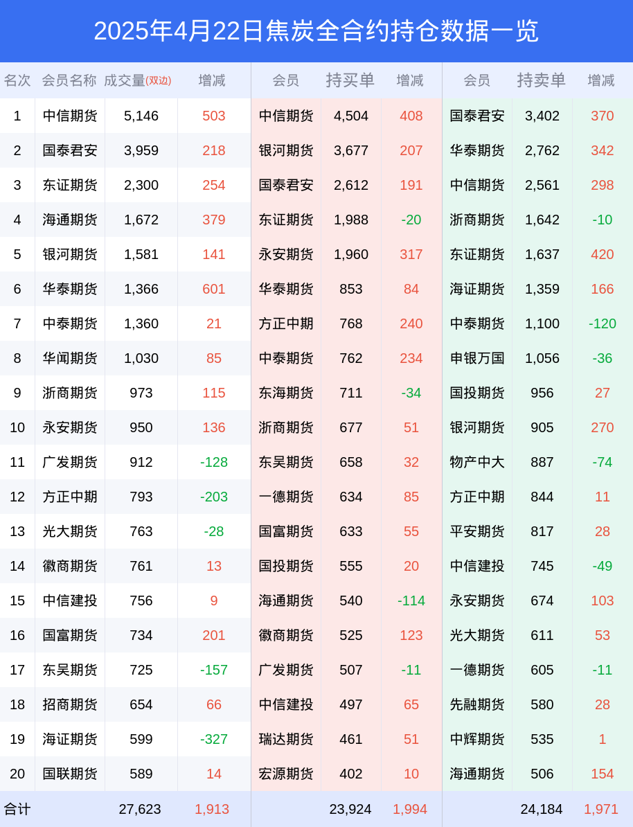 根据合并数据显示,多头前三席位为中信期货(代客),总持仓4504、银河期货(代客),总持仓3677、国泰君安(代客),总持仓2612;空头前三席位为国泰君安(代客),总持仓3402、华泰期货(代客),总持仓2762、中信期货(代客),总持仓2561;