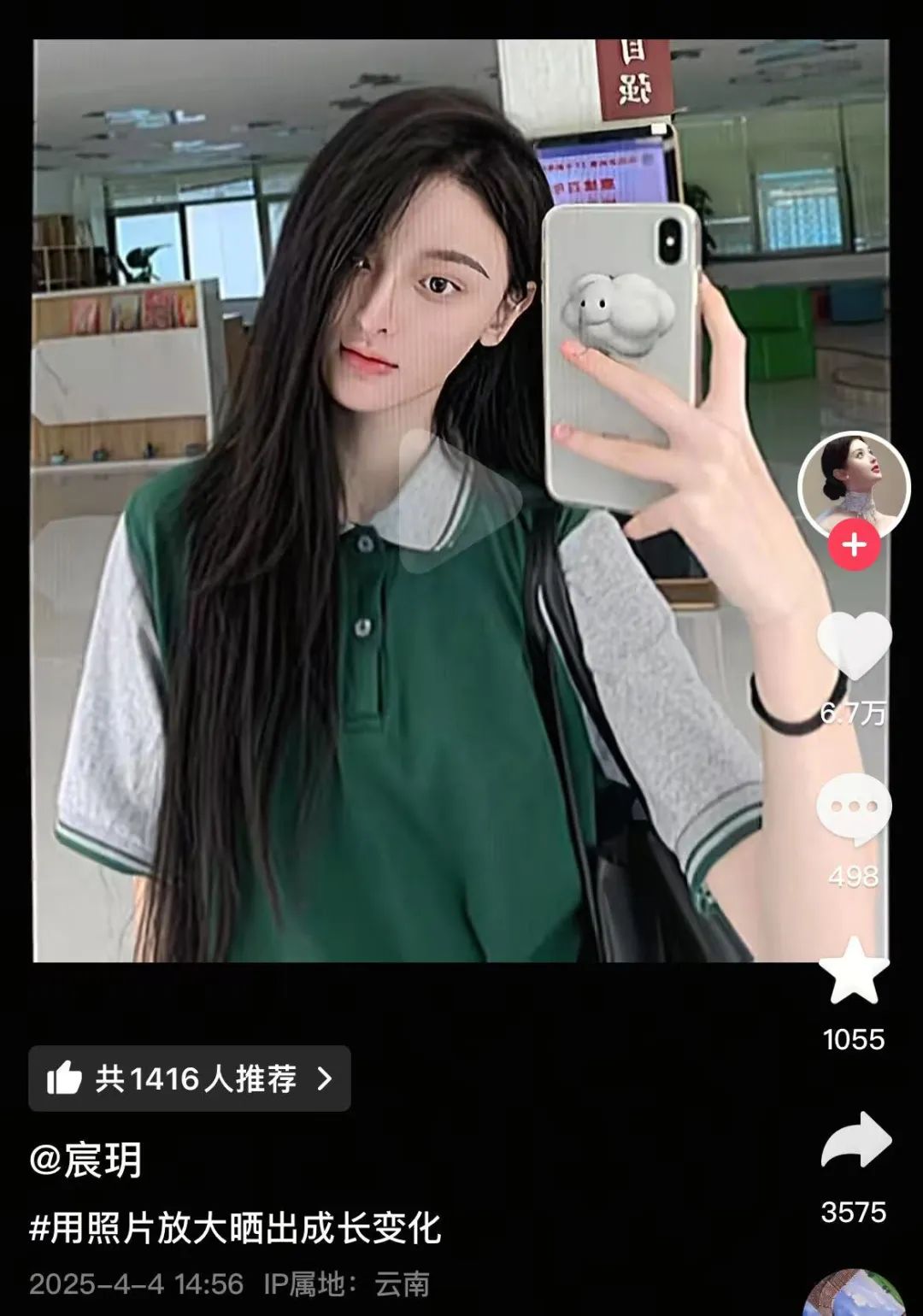 其视频内容大多以颜值为主,热度颇高。面对评论区持续不断的质疑,宸玥曾在4月4日晒出成长变化照,包括素颜穿校服的照片。