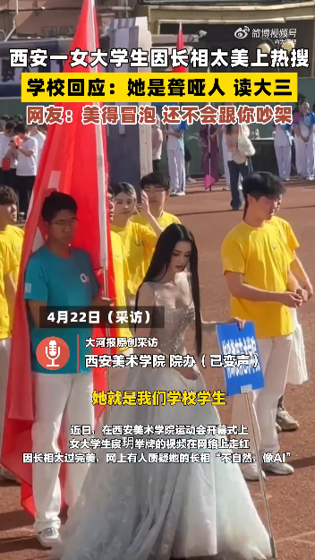4月22日,据海报新闻消息,近日,西安美院聋哑女大学生宸玥因长相太过完美被质疑。有网友称宸玥长得像AI,美得不真实。