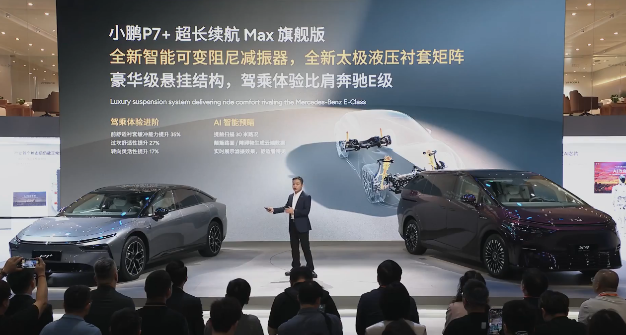 此外,小鹏P7+超长续航Max旗舰版提升了底盘悬挂体验,搭载全新智能可变阻尼减振器、全新太极液压衬套矩阵。