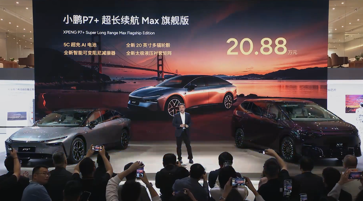 小鹏P7+于去年11月7日晚正式上市,售价18.68万-21.88万元。小鹏P7+超长续航Max旗舰版今日正式上市,其新增搭载5C超充AI电池版本,“充电10分钟,通勤一个月”。