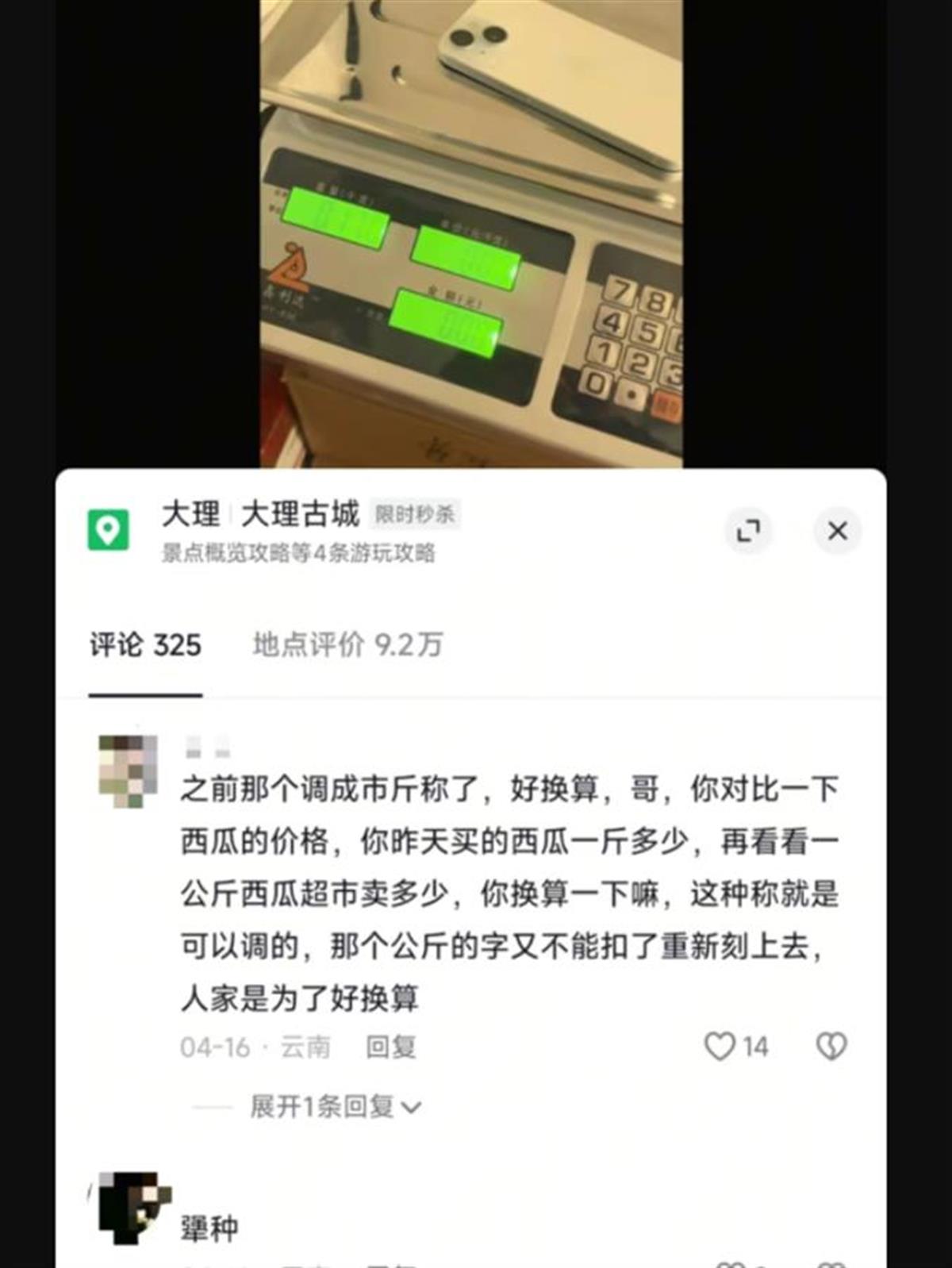 当地网友表示,因为大理用“市斤”,商家买来电子秤后会进行调改,以符合买卖双方的认知。但是,秤上的“千克”标识又不好改,主打一个双方知情。不过,在外地网友看来,170克等于340克,无论如何是一个荒谬的说法。