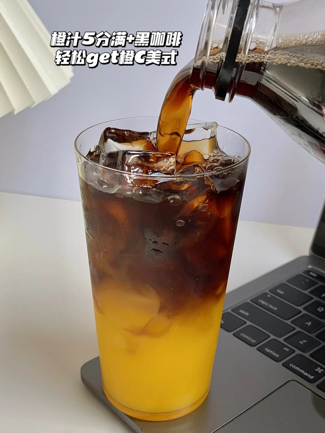 ⭐️我还和橙汁一起diy了橙C美式,做法简单:
