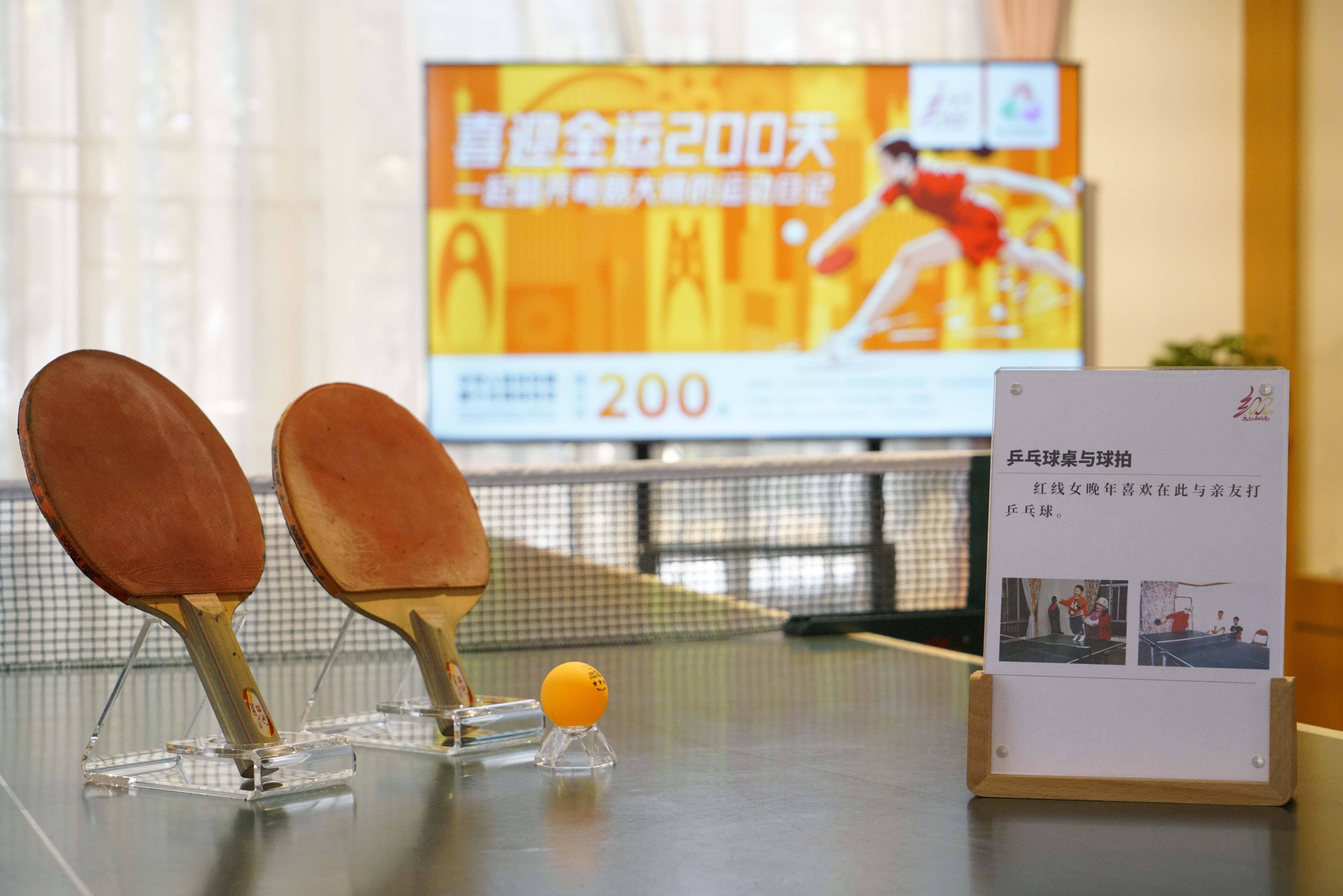 红线女艺术中心主任蒙菁告诉记者,红线女老师生前很热爱体育运动,在家中精心布置了乒乓球台,经常组织亲友打家庭比赛,还在球台上放置毛主席打乒乓球的照片。
