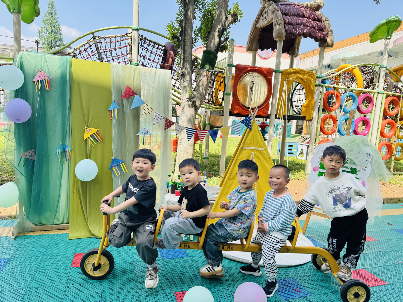 为了让托、小班幼儿在安全、熟悉的环境中亲近自然,老师们精心策划了“春日寻宝”游戏,幼儿园的草坪区成为了孩子们撒欢的自由天堂。孩子们化身“小小侦探”,有的幼儿观察树木、花草,寻找春天的足迹;有的幼儿蹲在花坛边观察新芽的纹路,踮脚轻嗅花的清香;有的班级在开展踩尾巴、贪吃蛇、老鹰抓小鸡等趣味游戏……孩子们在欢声笑语中感受春日乐趣。