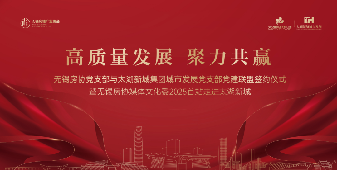 为加强与市场多方的沟通与合作,共同探索房地产行业健康稳定发展的新路径,4月23日,由无锡房地产业协会、无锡太湖新城城市发展有限公司联合主办的“高质量发展聚力共赢”无锡房协党支部与太湖新城城市发展党支部党建共建签约仪式暨无锡房协媒体文化委2025首站走进太湖新城活动成功举办。