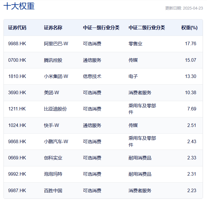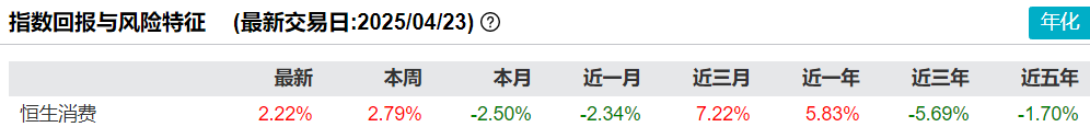 恒生消费指数:消费属性稳定,成分股多为传统消费领域的龙头企业,业绩相对稳定,在市场波动较大时,表现相对中证港股通消费主题指数,要稳健一些。