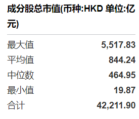 恒生消费指数:从恒生综合指数的成分股中,选取市值最高的50只归类为非必需性消费或必需性消费中特定业务?类别的股票,成分股的平均市值约为844亿元。