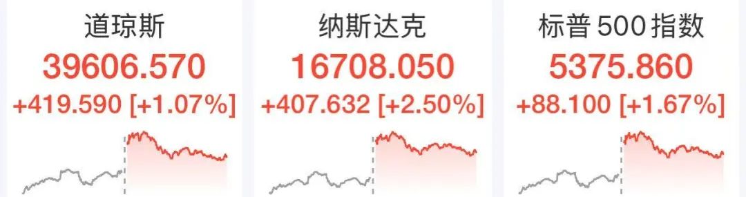科技股领涨,英特尔涨超5%,亚马逊、Meta、博通、AMD、台积电涨逾4%,英伟达涨近4%,苹果、谷歌涨逾2%。