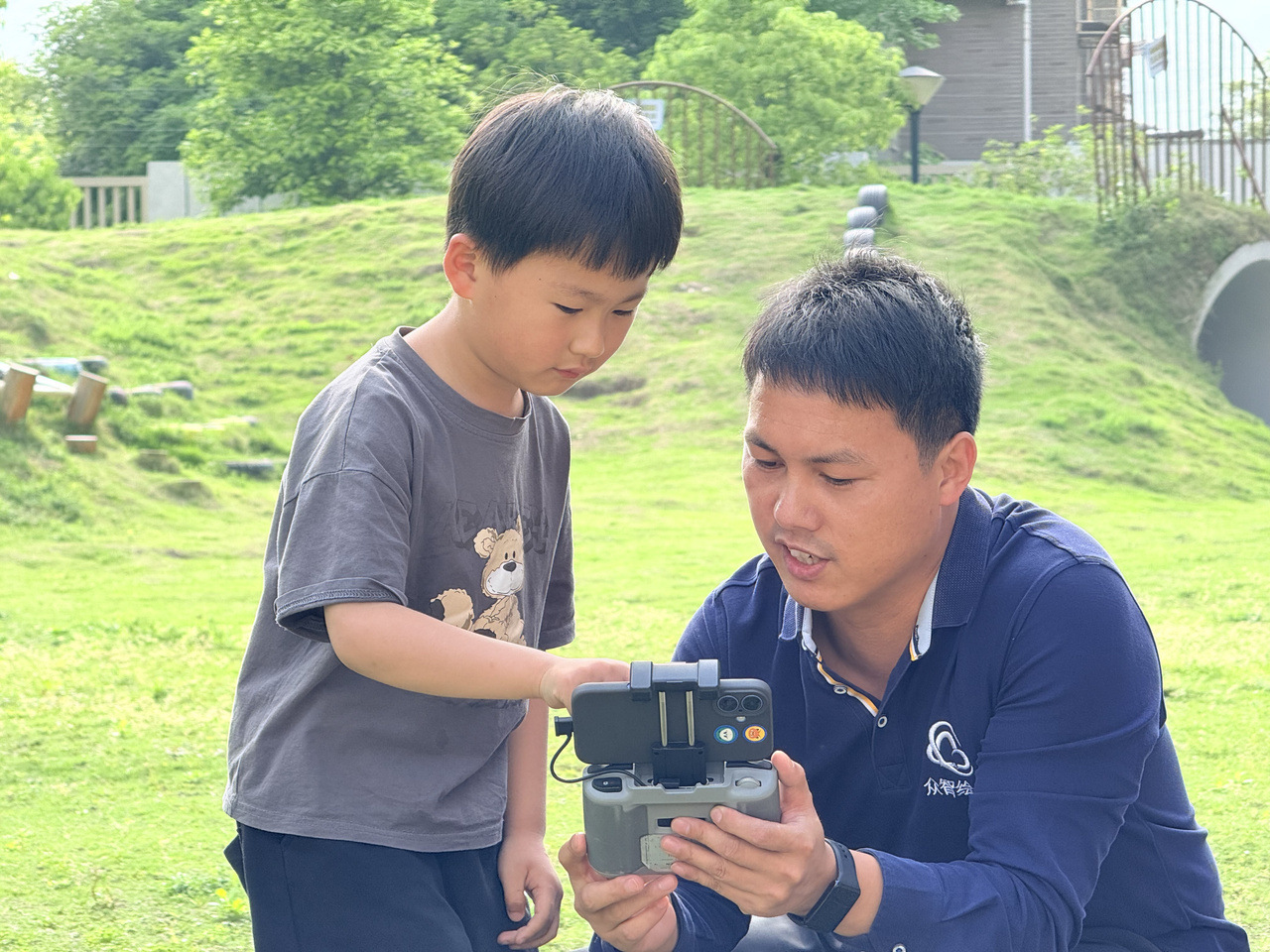 活动中,张老师用生动易懂的语言向孩子们介绍了无人机的基本构造,通过实物展示让孩子们认识了螺旋桨、支架、遥控器等部件名称。孩子们睁大好奇的眼睛,近距离观察无人机的细节,不时发出惊叹声。在互动环节,张老师邀请部分幼儿亲手操作无人机,当无人机在孩子们的控制下缓缓升空时,现场响起阵阵欢呼,科技的种子悄然在稚嫩的心田生根发芽。