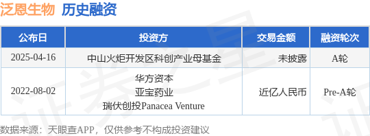 证券之星消息,根据天眼查APP于4月16日公布的信息整理,广州泛恩生物科技有限公司A轮融资,融资额未披露,参与投资的机构包括中山火炬开发区科创产业母基金。
