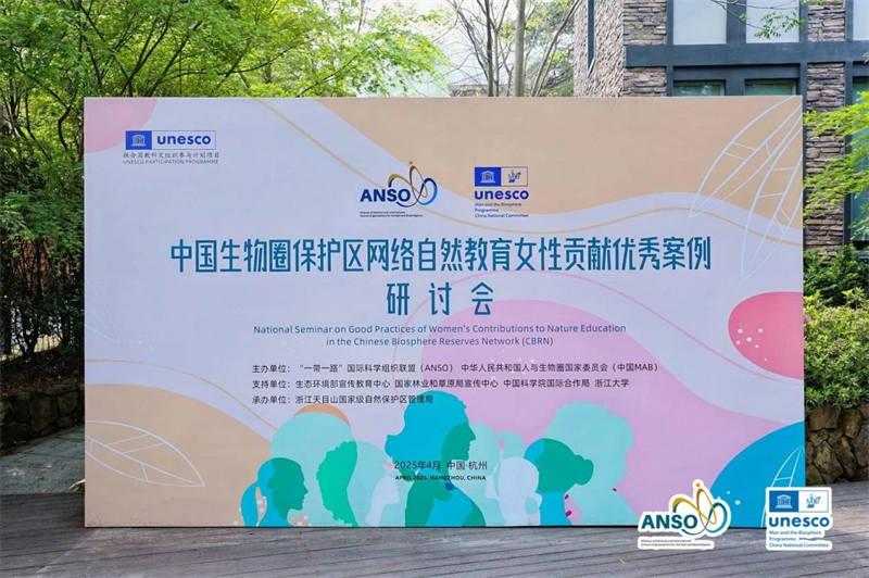 4月20日—23日,在联合国教科文组织参与计划(UNESCOParticipationProgramme)项目的支持下,由“一带一路”国际科学组织联盟(ANSO)和中国人与生物圈国家委员会(中国MAB)联合主办的“中国生物圈保护区网络(CBRN)自然教育女性贡献优秀案例研讨会”在浙江杭州举办。该研讨会由浙江天目山国家级自然保护区管理局承办,旨在向世界展示女性在中国生物圈保护区网络自然教育领域的突出贡献,搭建经验交流与思想碰撞的平台,助力即将在中国杭州召开的第五届世界生物圈保护区大会。会议得到了生态环境部宣传教育中心、国家林业和草原局宣传中心、中国科学院国际合作局、浙江大学的支持。ANSO秘书处副主任易志军主持开幕式,来自全国的80多名嘉宾、专家及优秀案例代表参会。