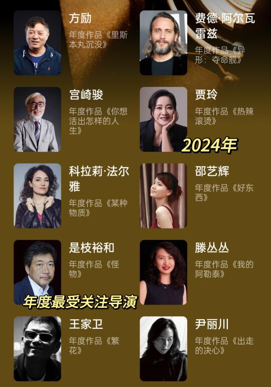 年度榜单出了,对比起2023年,最受关注的导演中女性导演的数目俨然增长📈从去年的仅有一位到今年的半数,很有力的一个迈步