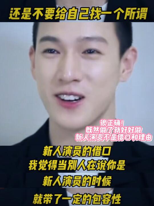 谈及“新人演员”时,他说“我觉得当别人在说你是新人演员的时候,就带了一定的包容性。”
