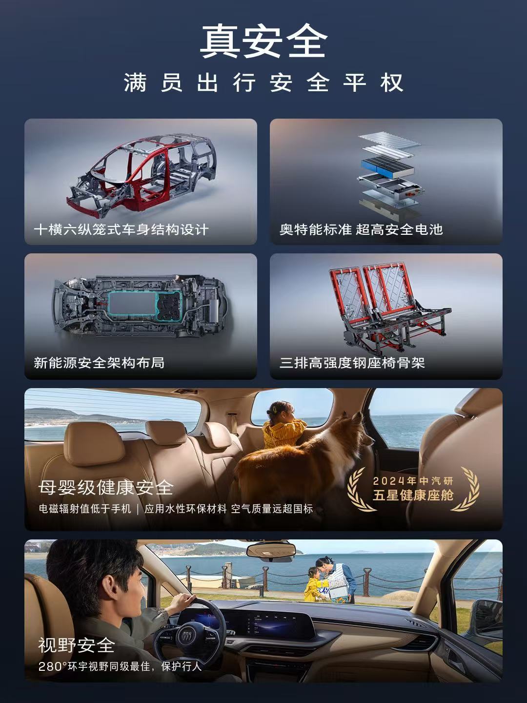 安全方面,GL8陆尚采用全新十横六纵笼式铠甲车身结构,获CNCAP5星级和中保研小偏置碰撞G(优秀)安全认证。