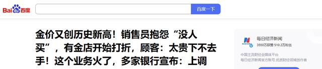 每日经济新闻-《金价又创历史新高!销售员抱怨“没人买”,有金店开始打折,顾客:太贵下不去手!这个业务火了,多家银行宣布:上调》