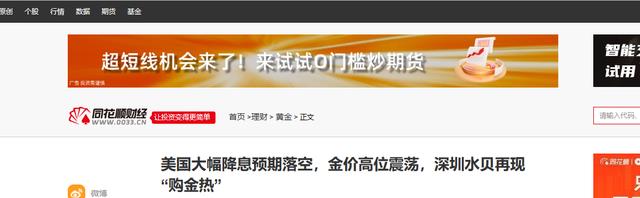 同花顺财经-《美国大幅降息预期落空,金价高位震荡,深圳水贝再现“购金热”》