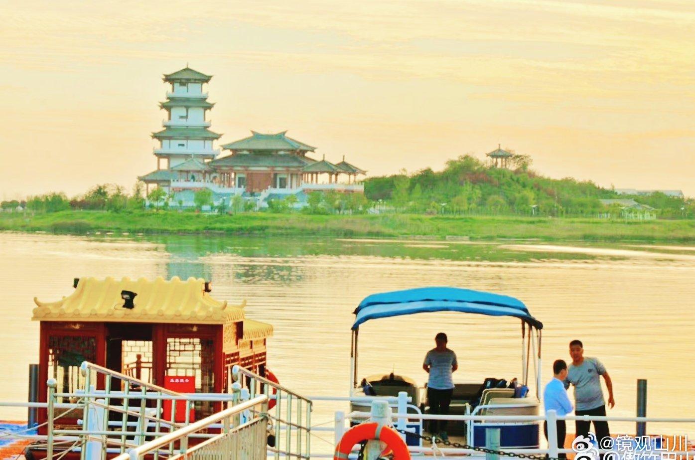 卤阳湖蓝天白云,夕阳之下的渭南卤阳湖水碧波荡漾,中国民用航空基地飞机腾空飞翔,直插苍穹,中国北京时间的授时中心指针地标.仰视着太空,卤阳湖风景这边独好。