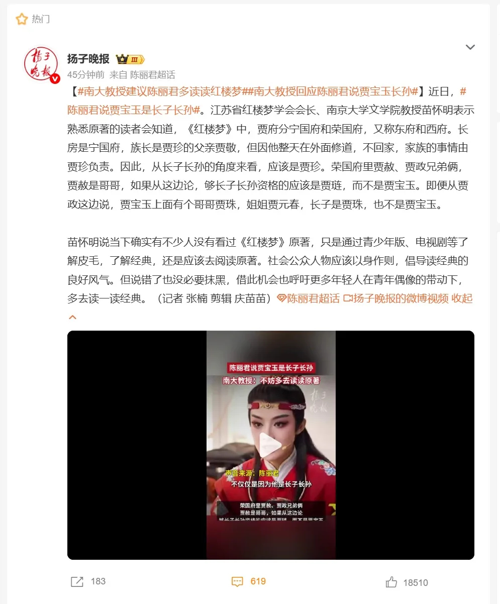 最后,你猜,贾宝玉为啥叫做“宝二爷”?而不是叫做“宝大爷”......南大教授回应陈丽君说贾宝玉长孙热点解读