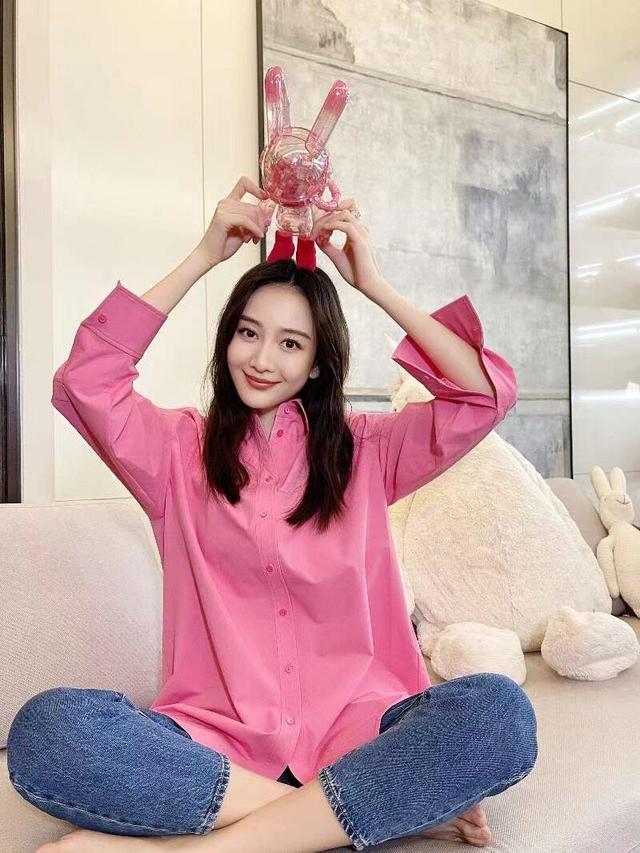 此外,“粉色衬衫+牛仔裤”日常休闲感也很好,很适合和闺蜜逛街穿。