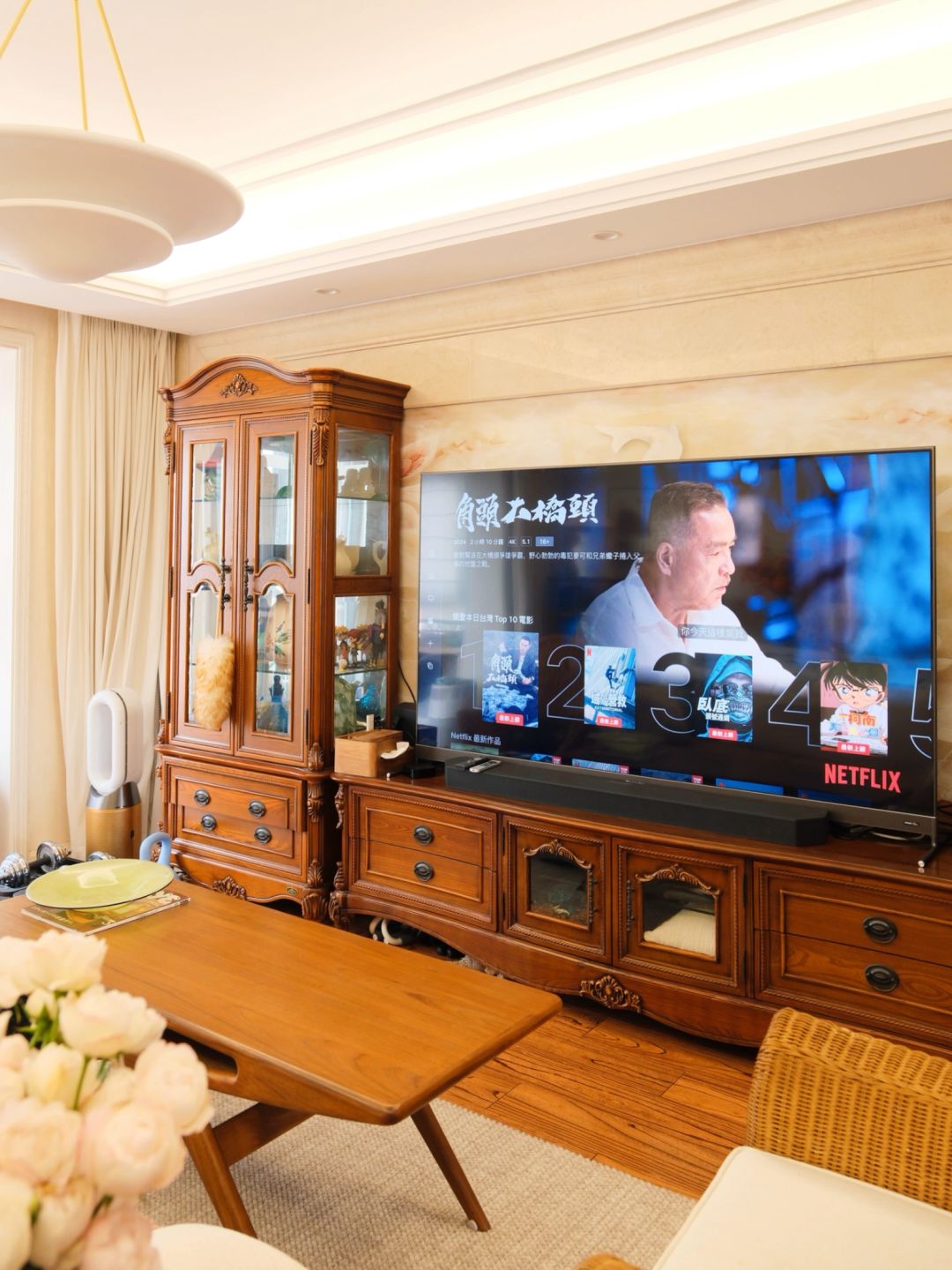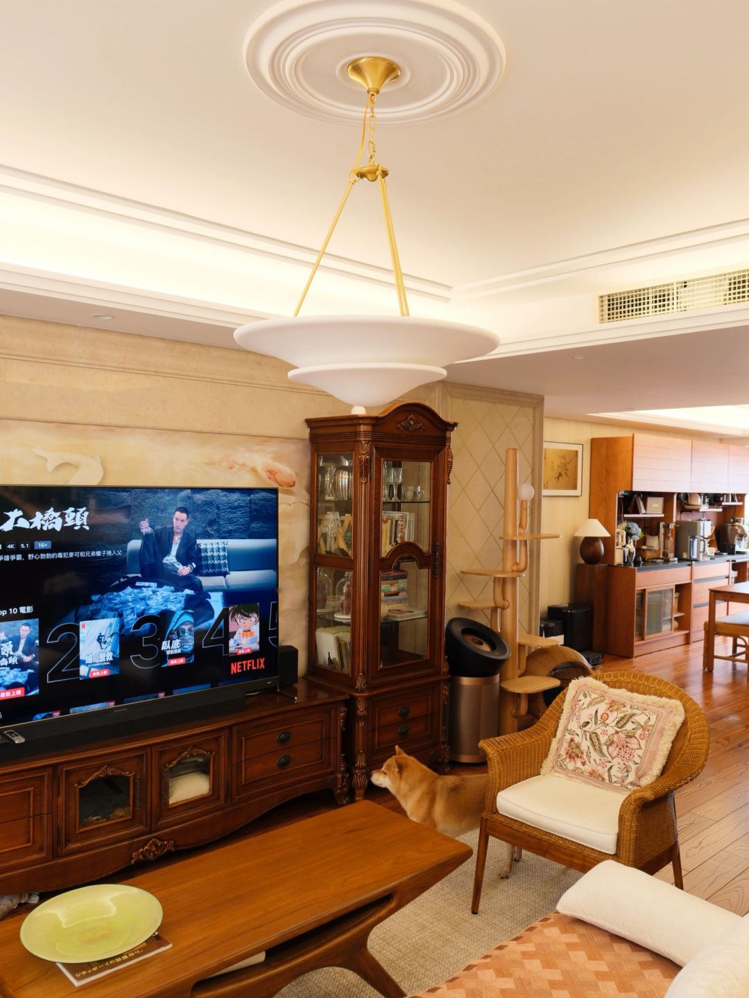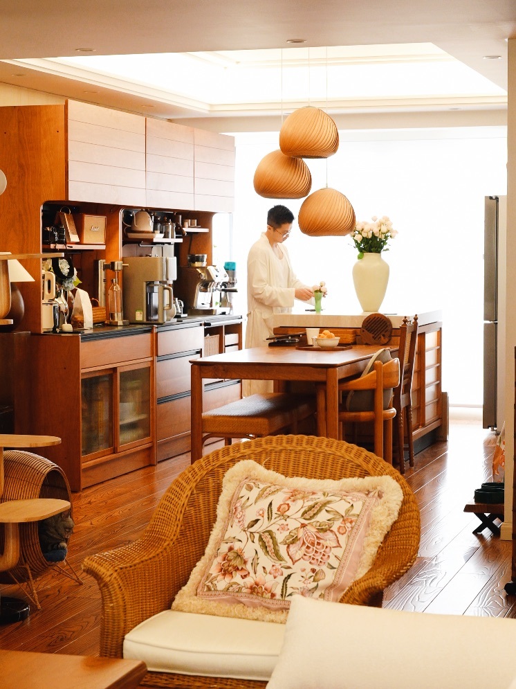 房子的墙布是奶油米白色的,再搭配木地板,整体干净温暖的调性。美式复古的基础上,再融入一些新中式、一点法式,和我租房十年攒下的心头好家居,这些元素融合混搭在一起,好像没有了所谓特定的风格,但好像又有了所谓的风格。我想——所谓风格,不过是把心爱之物妥帖安放。