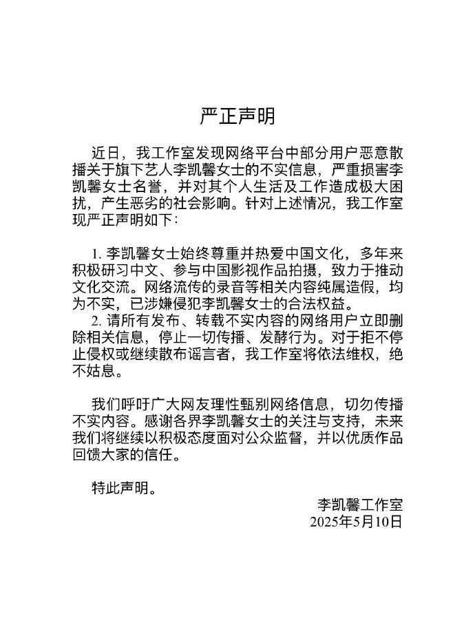 李凯馨发布声明了,否认那是她说的话,如果她选择找律师告,你就要证明那个是她说的,现在艺人告黑非常厉害,律师也很会找角度。