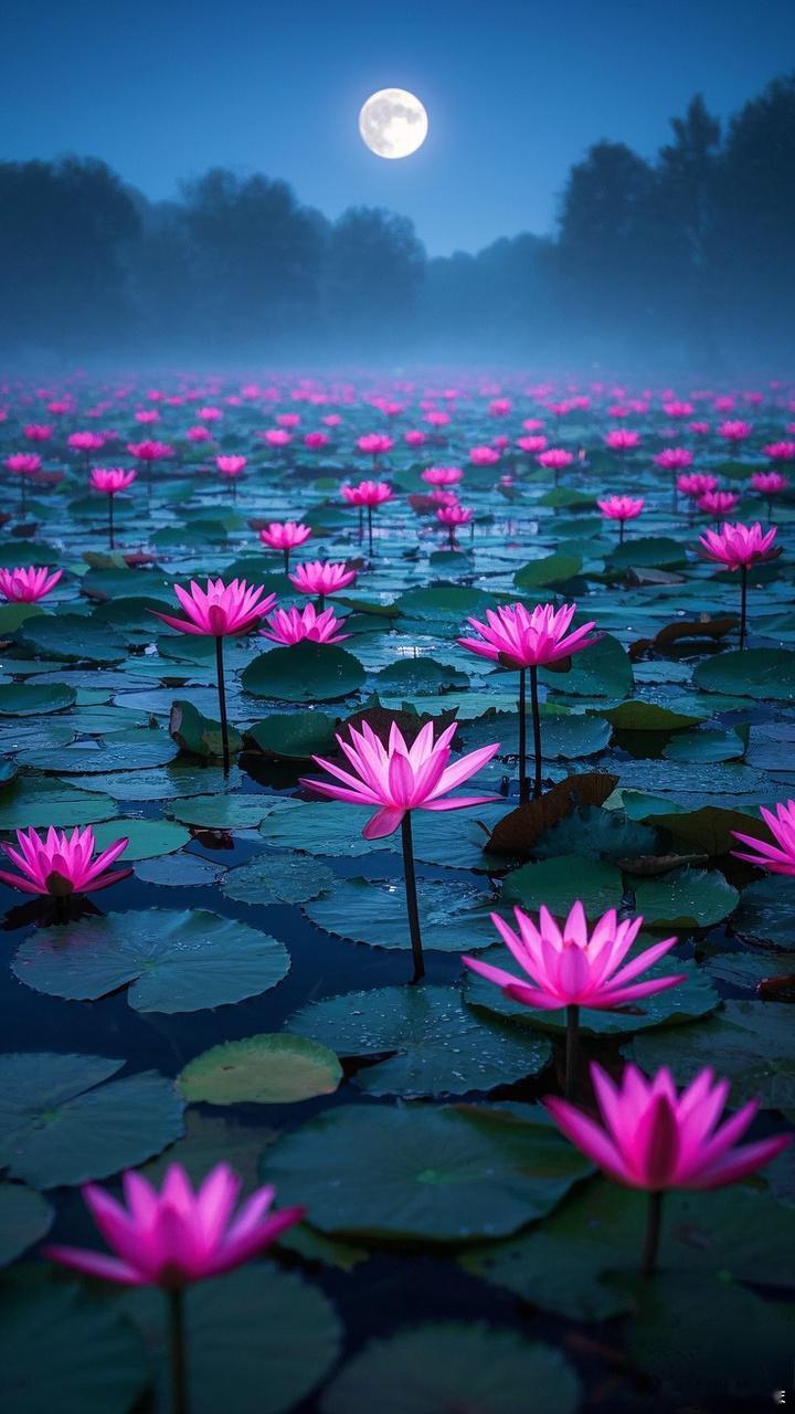 "好运莲莲·荷菏美美" 夜色荷塘唯美境意壁纸