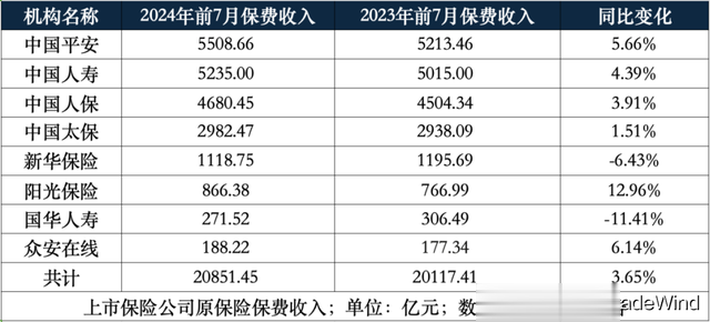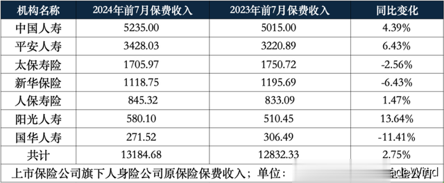 在上年高基数的基础上,作为“寿险一哥”的中国人寿保费规模与增速仍维持在行业前列,前7月共揽保费5235亿元、增幅达4.39%,较上半年的4.13%再有提升。
